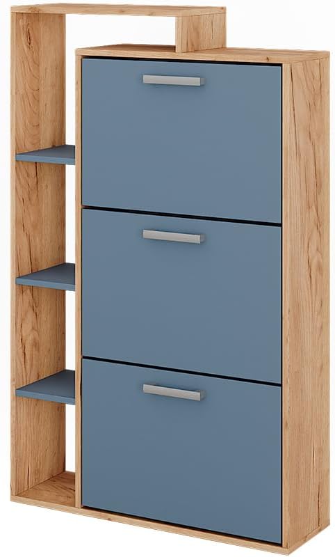 Vicco Garderobe Orlando, Goldkraft Eiche/Blau, 80 x 128.3 cm mit 3 Fächern, Goldkraft Eiche/Blau