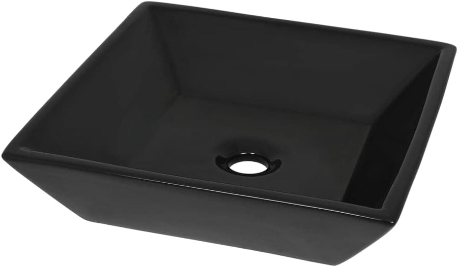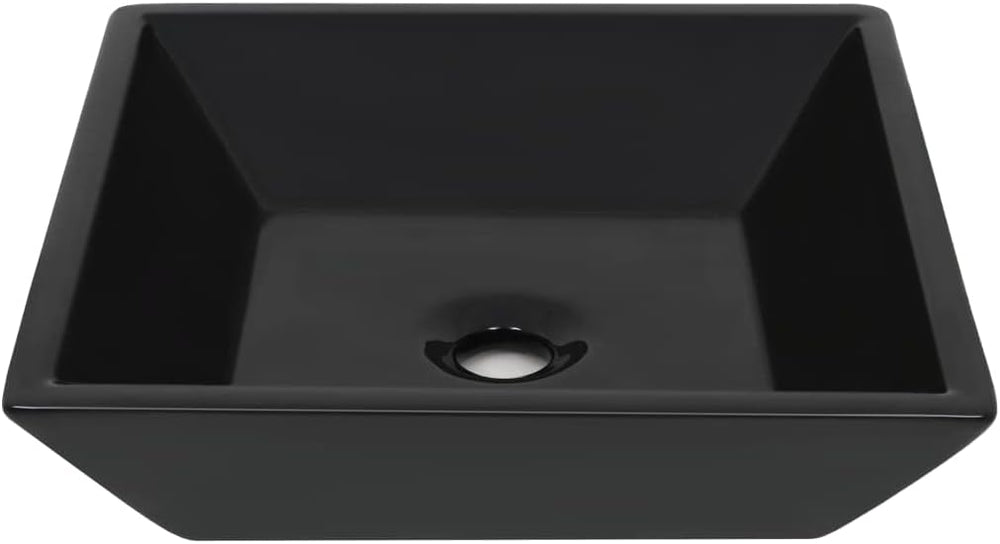 WIFESE Waschbecken Keramik Quadratisch Schwarz 41,5x41,5x12 cm Badezimmer Möbel Aufsatzwaschbecken E