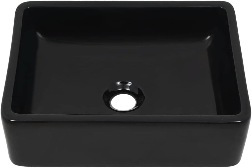 WIFESE Waschbecken Keramik Rechteckig Schwarz 41x30x12 cm Aufsatzwaschbecken Eckig Waschbecken Gäste