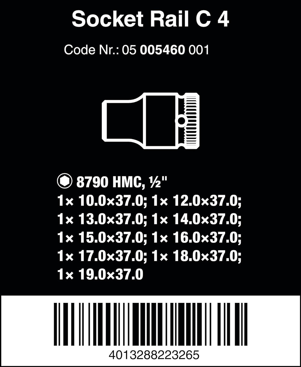 Wera 05005460001 Nuss-Magnetleiste C 4 Zyklop Steckschlüsseleinsatz-Satz, 1/2"-Antrieb, 9-teilig C 4