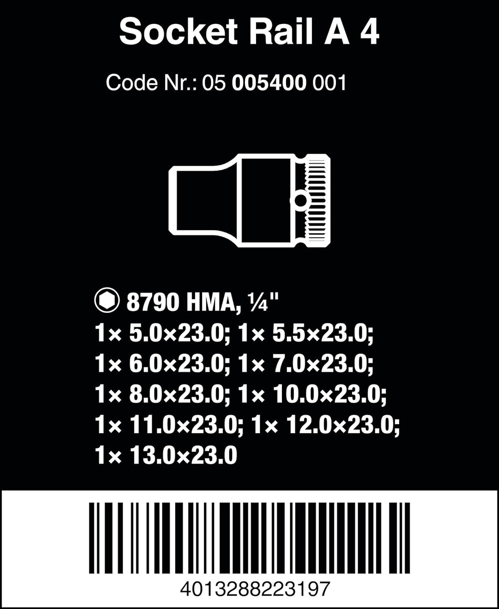 Wera 05005400001 Nuss-Magnetleiste A 4 Zyklop Steckschlüsseleinsatz-Satz, 1/4"-Antrieb, 9-teilig A 4