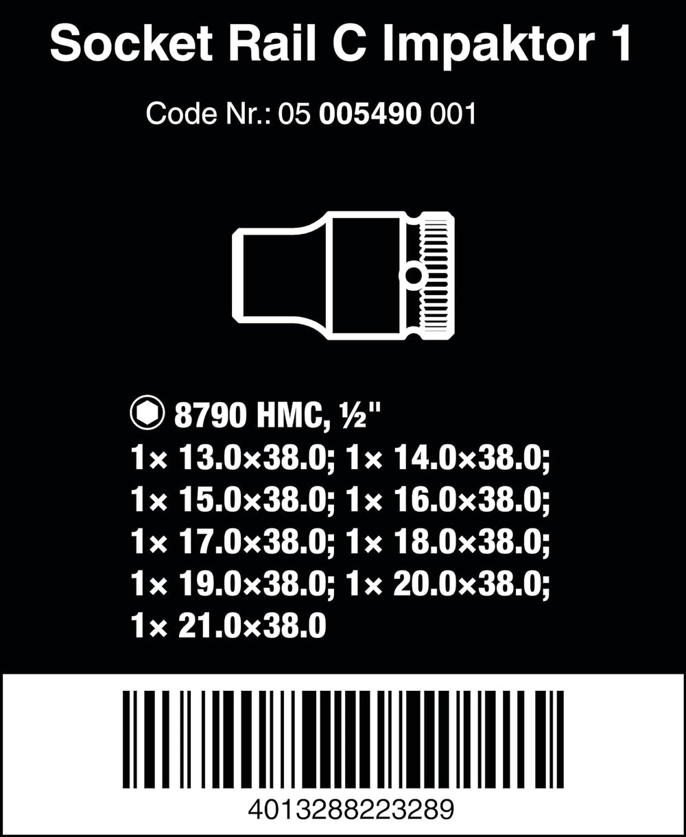 Wera 05005490001 Nuss-Magnetleiste C Impaktor 1 Steckschlüsseleinsatz-Satz, 1/2"-Antrieb, 9-teilig,