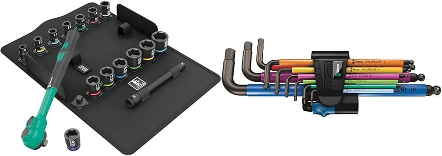 Wera 05005530001 8100 SB 12 Zyklop Comfort Knarrensatz & 05022210001 950/9 Hex-Plus Multicolour HF 1