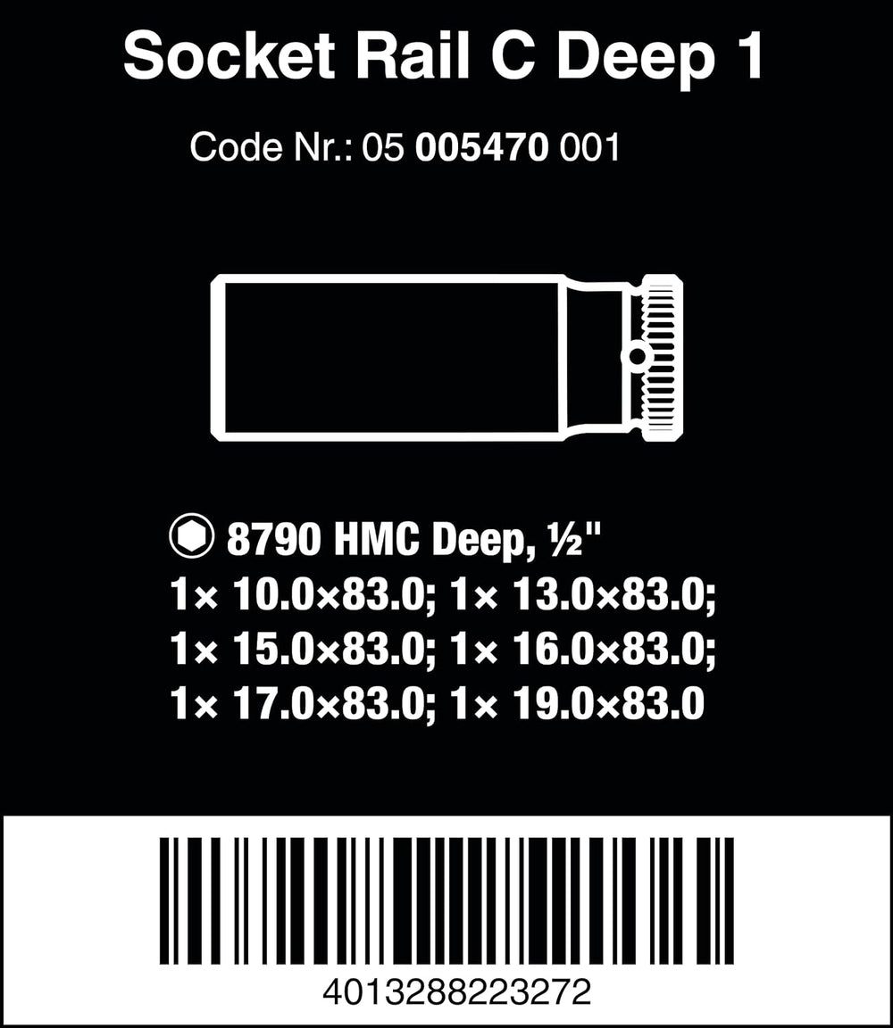 Wera 05005470001 Nuss-Magnetleiste C Deep 1 Steckschlüsseleinsatz-Satz, 1/2"-Antrieb, 6-teilig C Dee