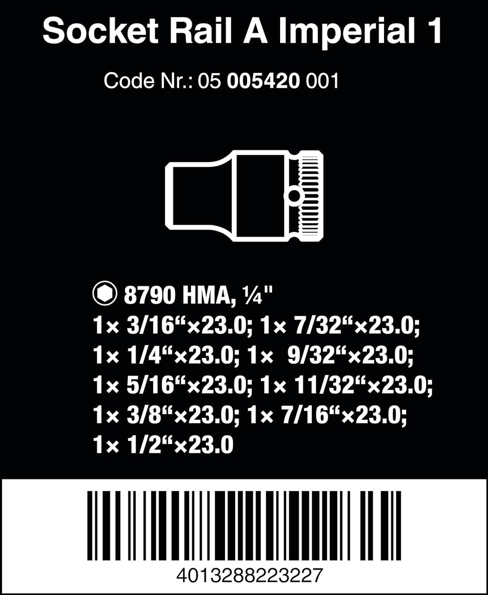Wera 05005420001 Nuss-Magnetleiste A Imperial 1, Zyklop Steckschlüsseleinsatz-Satz, 1/4"-Antrieb, zö