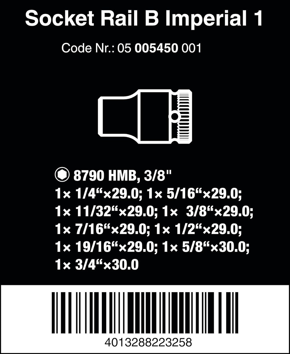 Wera 05005450001 Nuss-Magnetleiste B Imperial 1, Zyklop Steckschlüsseleinsatz-Satz, 3/8"-Antrieb, zö
