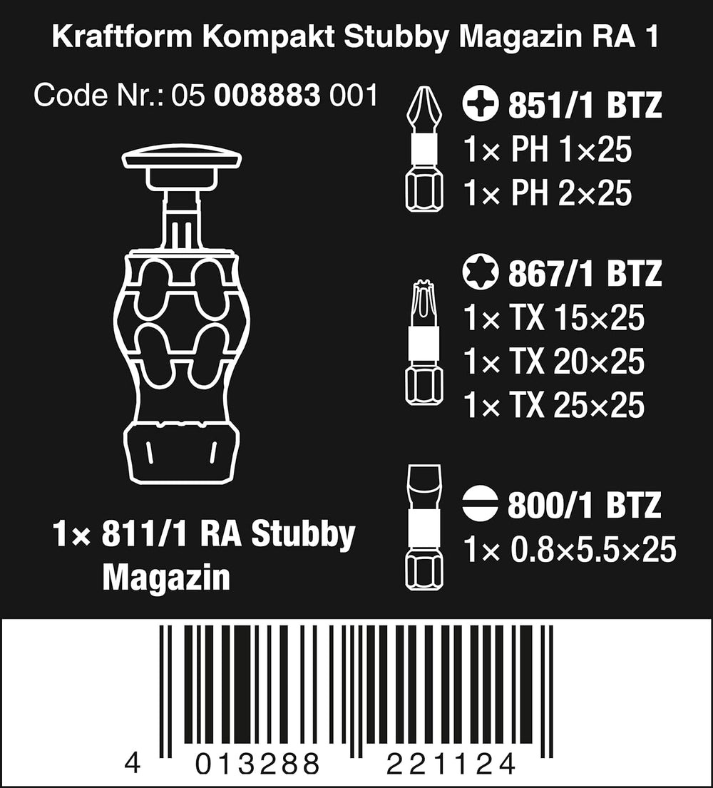 Wera 05008873001 Kraftform Kompakt Stubby 1 Schraubendreher mit Bit Magazin, 6-teilig & 05033404001