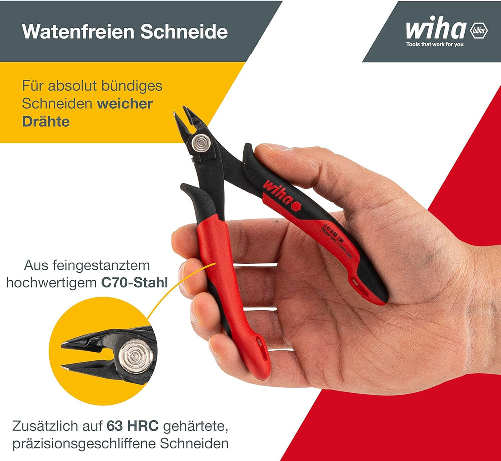 Wiha Präzisions Seitenschneider Elektronik klein (27395) breiter, spitzer Kopf ohne Wate 130mm I Dra
