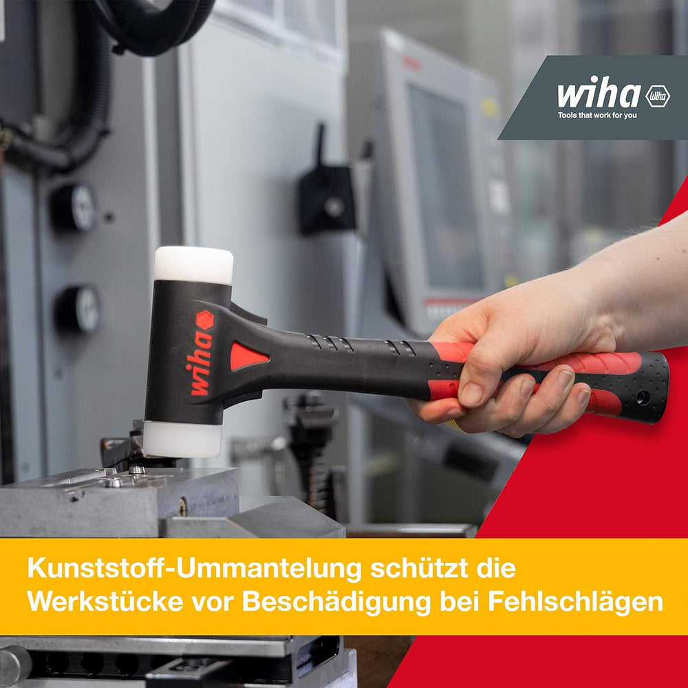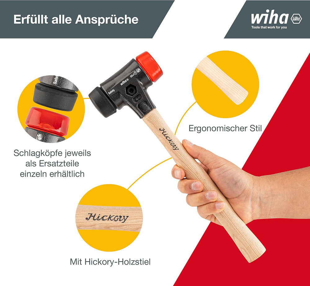 Wiha Schonhammer Safety mittelweich und hart (26612) I Gummihammer mit hochwertigem Hickory Holzstie