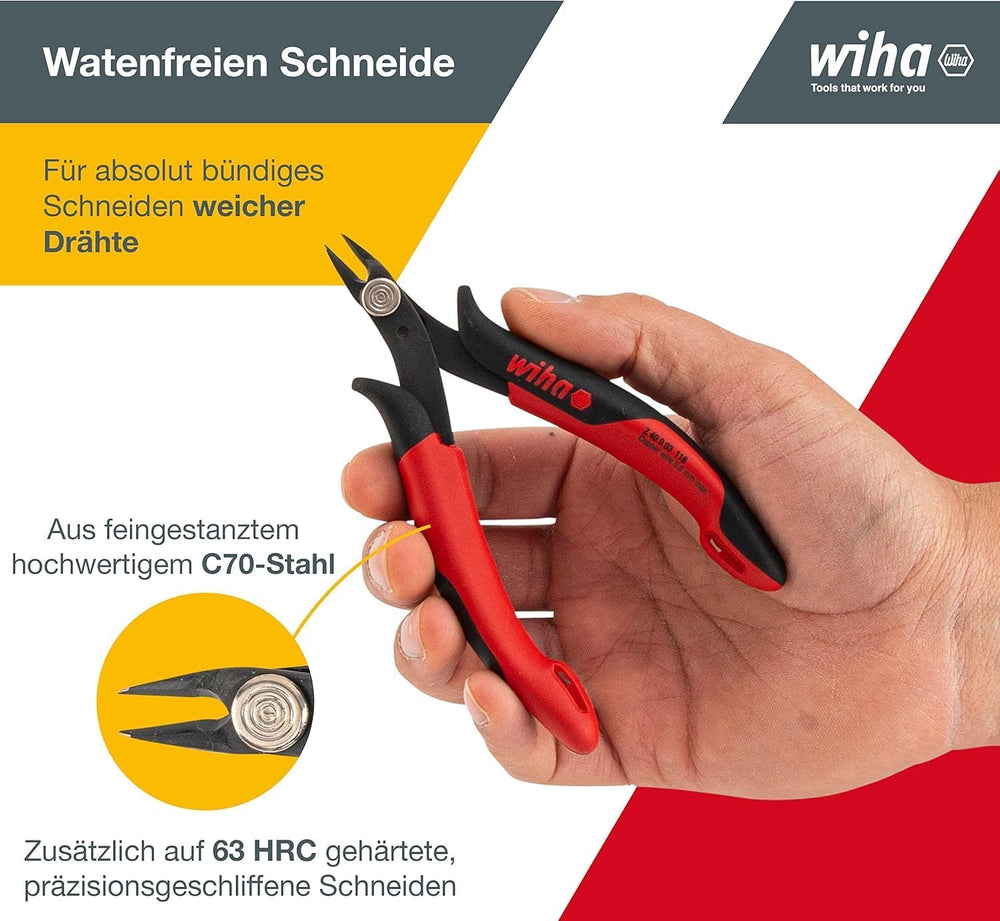 Wiha Präzisions Seitenschneider Elektronik klein (27388) sehr schmaler, spitzer Kopf ohne Wate 130mm