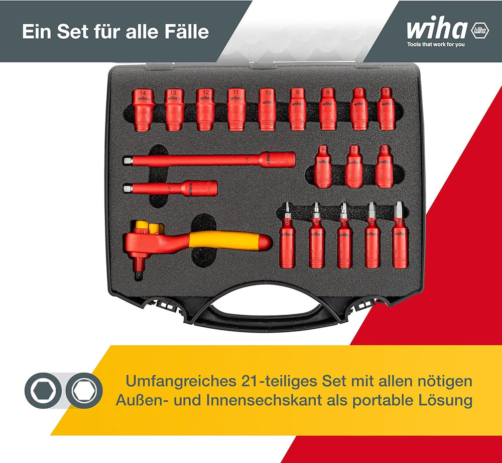 Wiha Ratschenschlüssel Set isoliert (43024) 21-tlg. I Aussensechskant 10mm - 31mm I Innensechskant 4