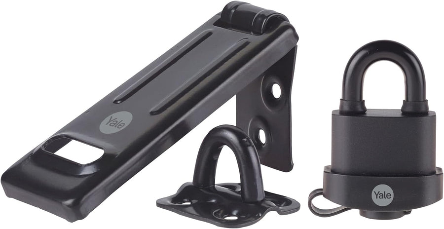 Yale Y220B/51/118/HSP Schwarzes, wetterfestes Vorhängeschloss und Schliessbügel, perfekt für den Aus