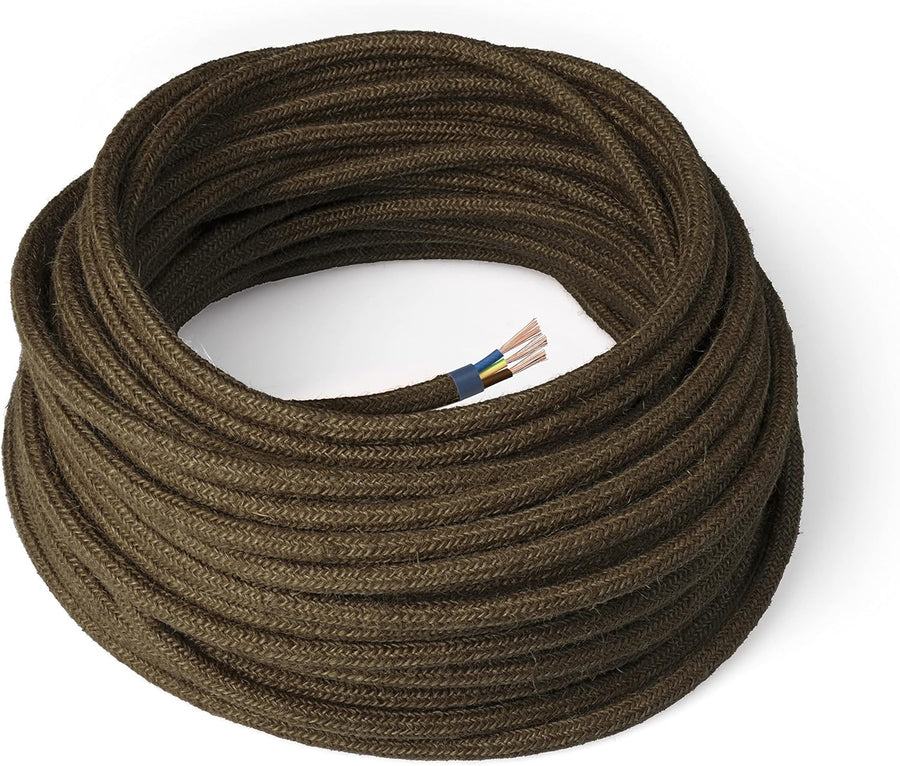 Amarcords - Textilkabel für Lampen JUTE, rund, Jute, 20 Meter, mit Erdung 3x0,75 - Stoffkabel mit fa