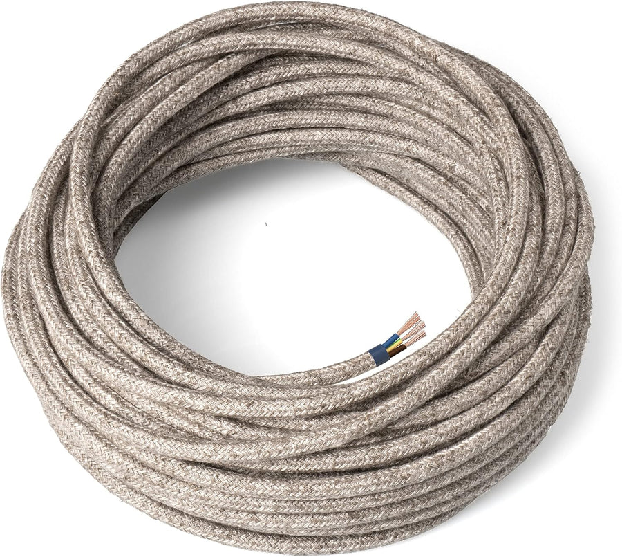 Amarcords - Textilkabel für Lampen ORIGAN, rund, Hanf, 10 Meter, mit Erdung 3x0,75 - Stoffkabel mit