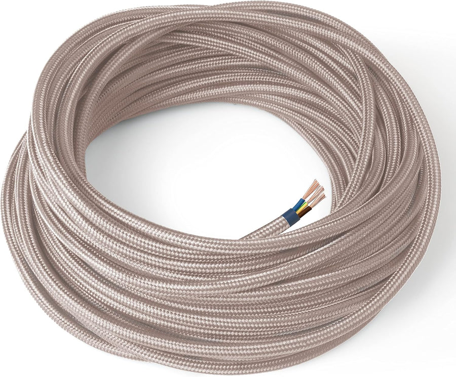 Amarcords - Textilkabel für Lampen PUDER, rund, Seide, 20 Meter, mit Erdung 3x0,75 - Stoffkabel mit