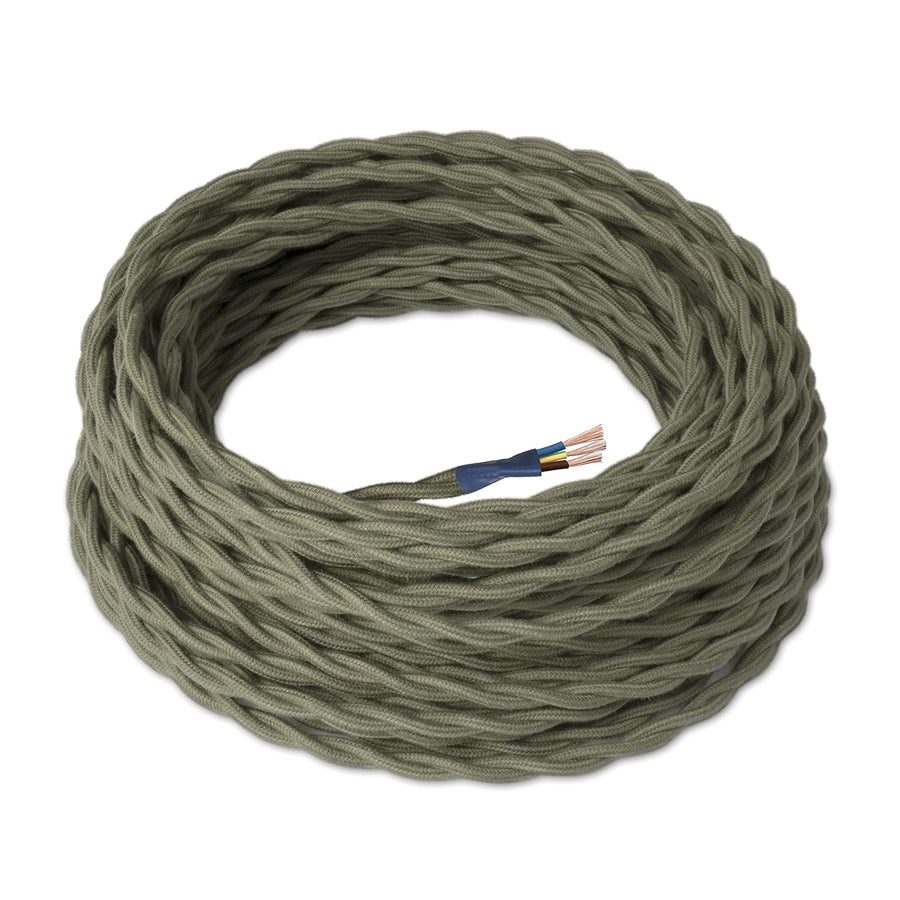 Amarcords - Textilkabel für Lampen SALBEI, geflochten, Leinen, 20 Meter, mit Erdung 3x0,75 - Stoffka