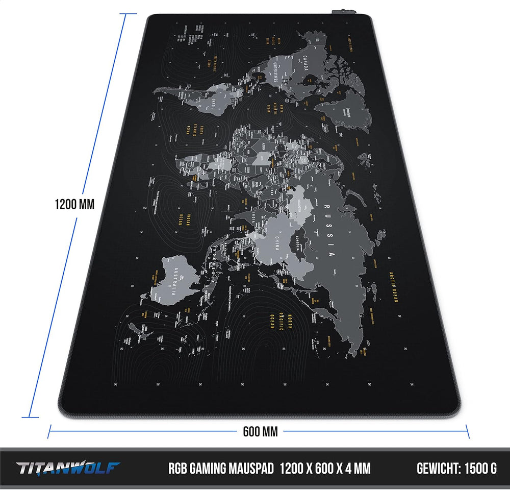Titanwolf - XXXL RGB Gaming Mauspad – 1200 x 600 mm - Mousepad - LED Multi Color - 7 LED Farben Plus