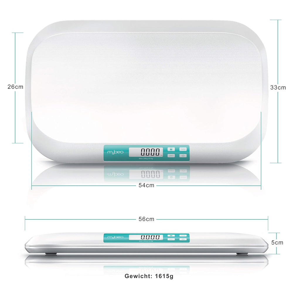 MyBeo - Babywaage digital - Wiegefläche 54 x 26 cm - 50 g bis 20 kg - 5 Gramm Genauigkeit - Kinderwa