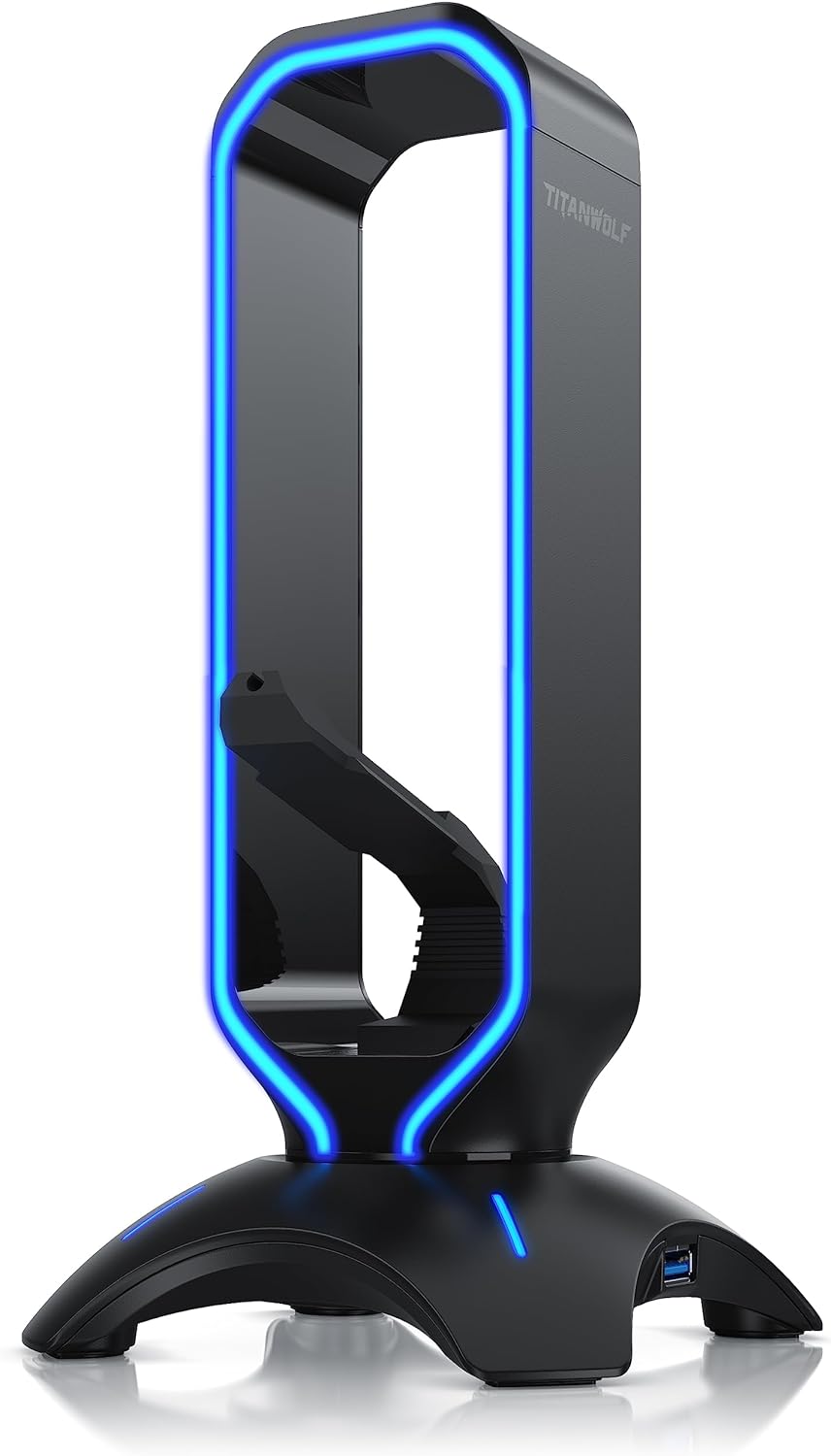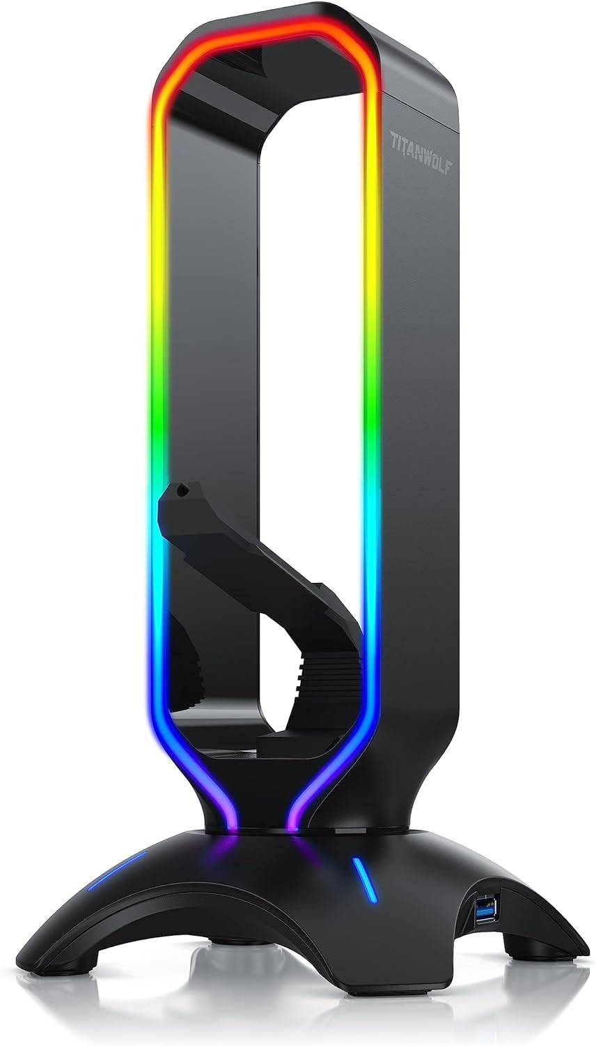 Titanwolf - Kopfhörerständer LED inkl. USB Hub - Gaming Kopfhörer Ständer mit 2 x USB 3.2 Gen1 Hub u