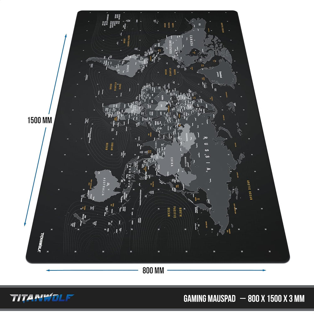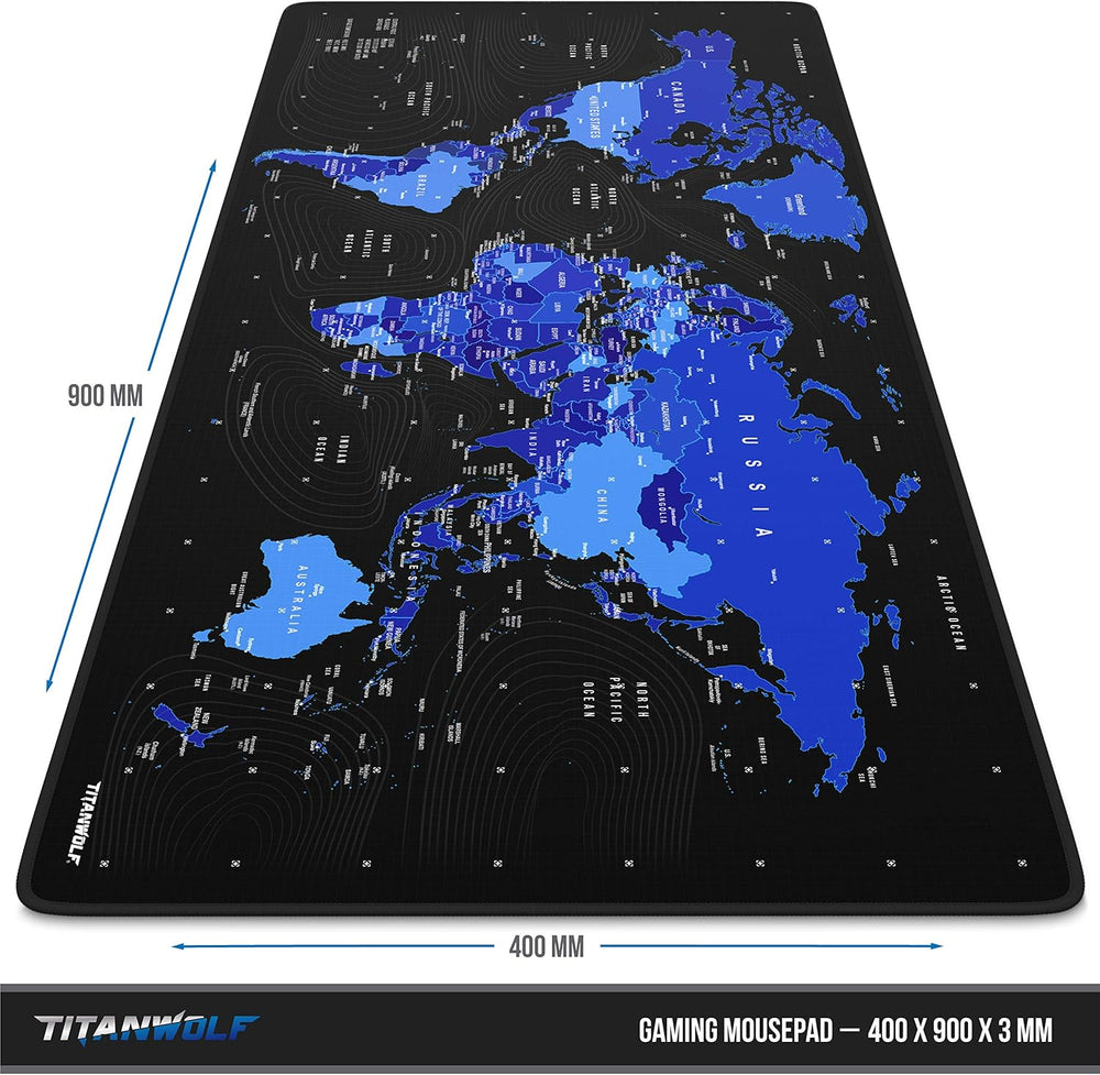 TITANWOLF - XXL Speed Gaming Mauspad Titanwolf Weltkarte 900 x 400mm - XXL Mousepad - Tischunterlage