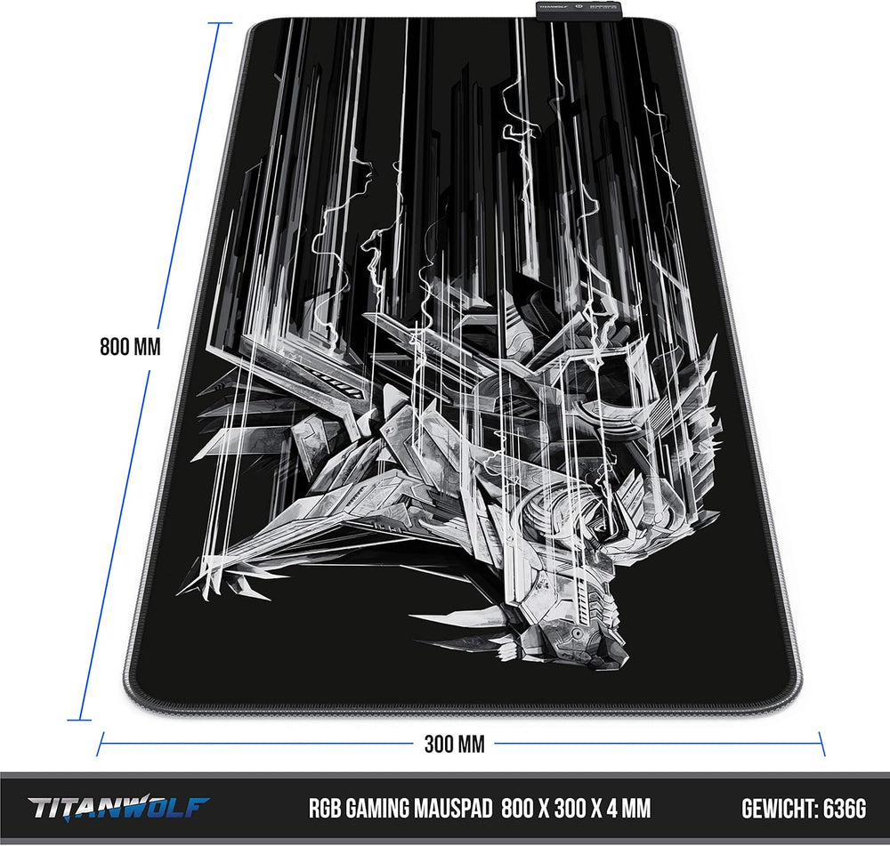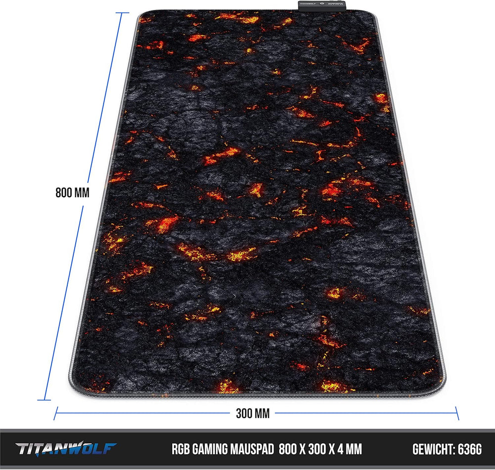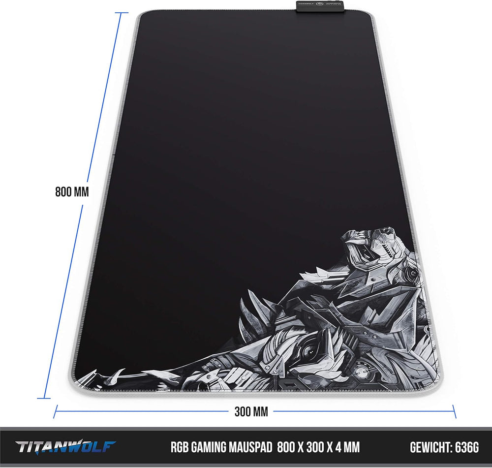 TITANWOLF - RGB Gaming Mauspad - LED Schreibtischunterlage - 900x400 mm Übergrösse - XXL Mousepad -