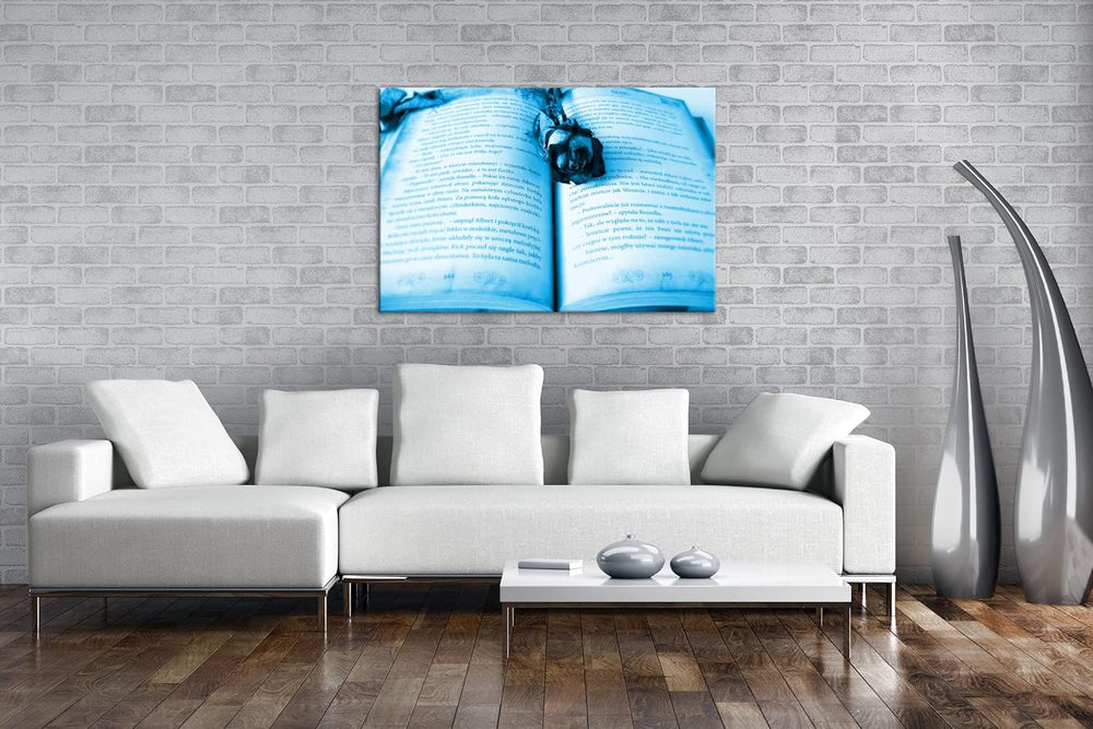 deyoli altes Buch mit roter Rose Format 80x60 Effekt: Monocrome Blau als Leinwandbild, Motiv fertig