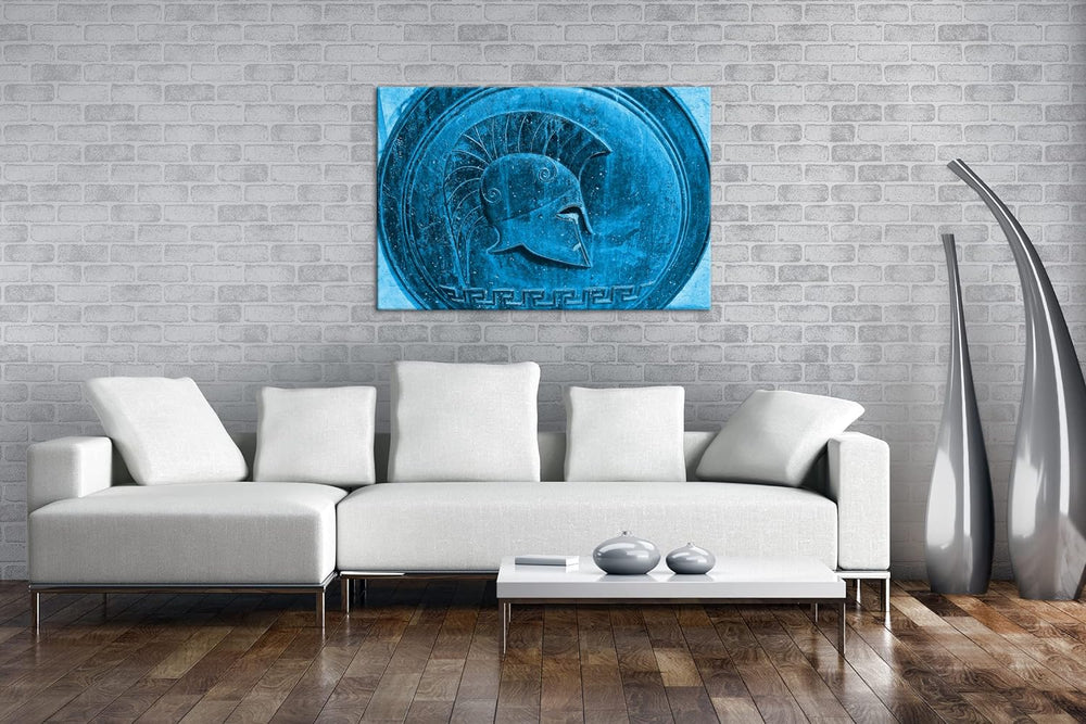deyoli altes römisches Bronzerelief Gladiator Format 80x60 Effekt: Monocrome Blau als Leinwandbild,