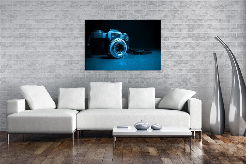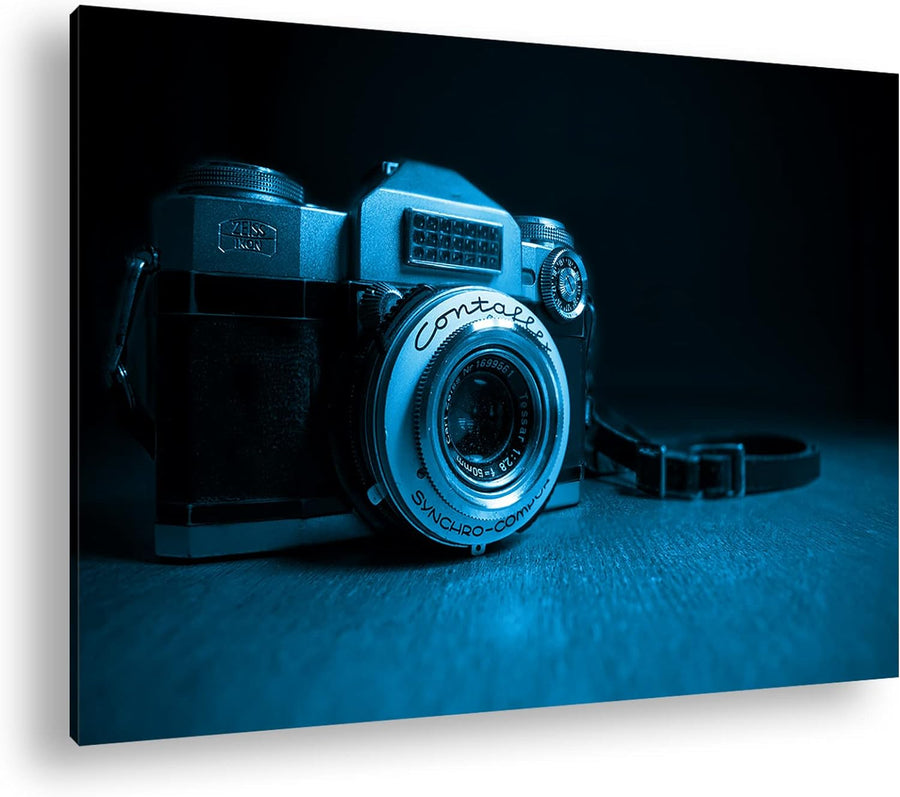 deyoli Altmodische Analogkamera Format 80x60 Effekt: Monocrome Blau als Leinwandbild, Motiv fertig g