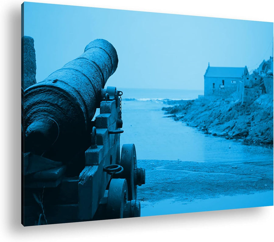 deyoli alte Kanone am Küstenufer Format 80x60 Effekt: Monocrome Blau als Leinwandbild, Motiv fertig