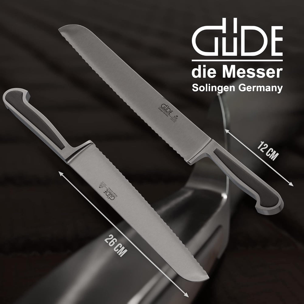 GÜDE Solingen - Brotmesser Für Links und Rechtshänder geschmiedet, 21 cm, POM schwarz, ALPHA, Doppel