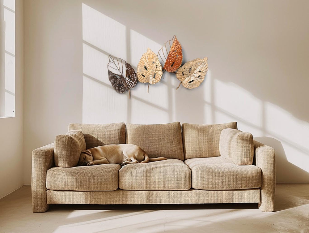 Kobolo Wandbild Wanddekoration Metallbild - ZWEIG mit Blättern - Metall - 30x65 cm