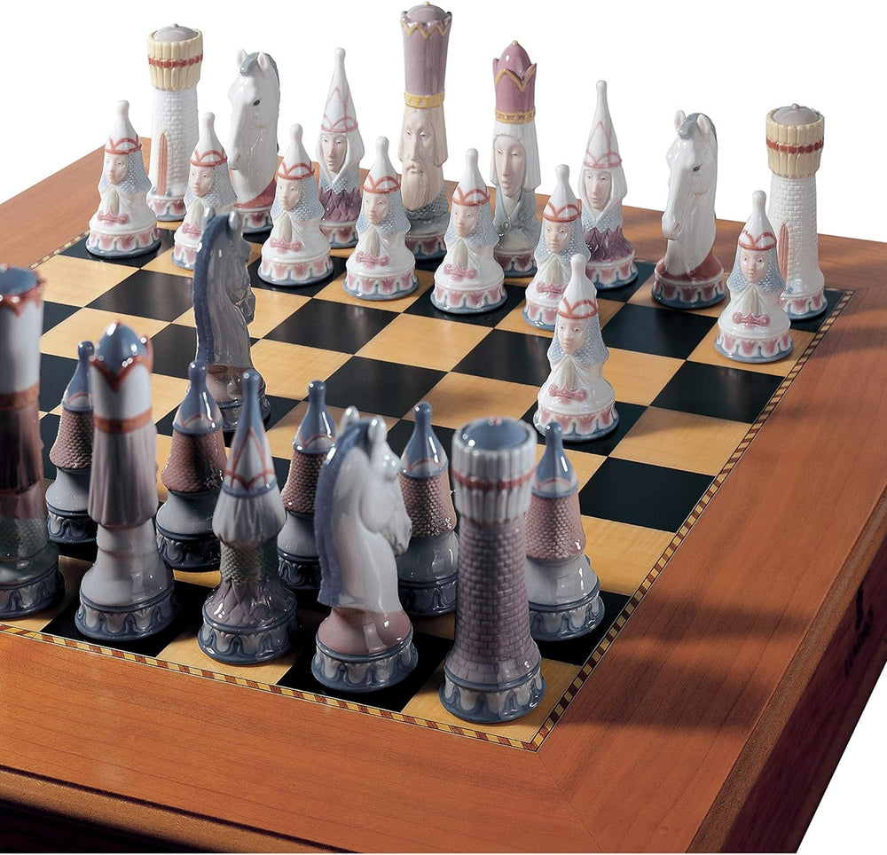 LLADRÓ Mittelalterliches Schachspiel, Komplett (Figuren + Box). Schachpiel. Porzellan.