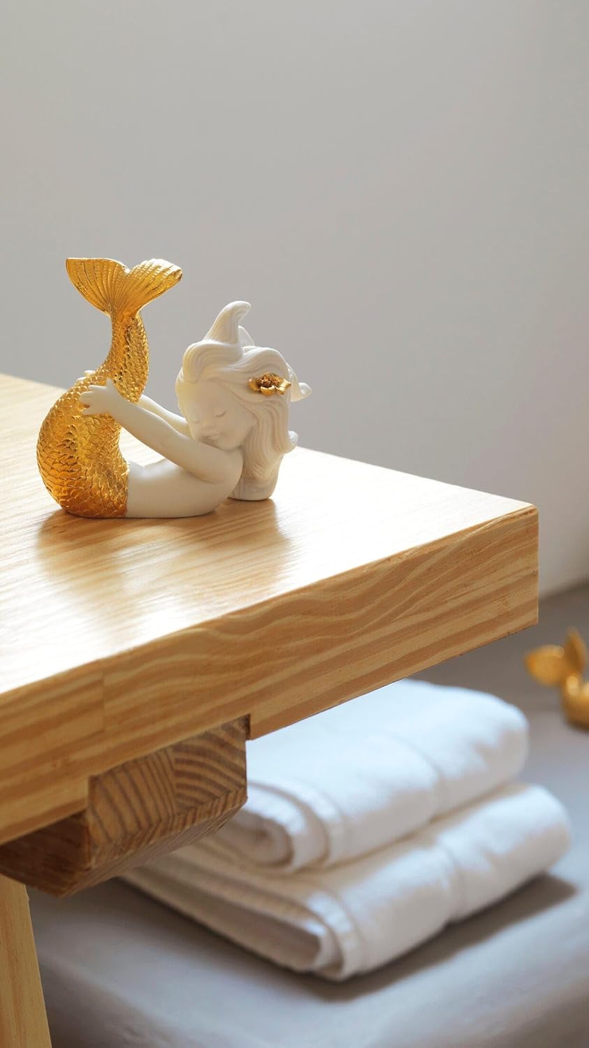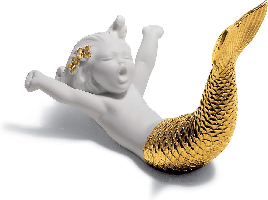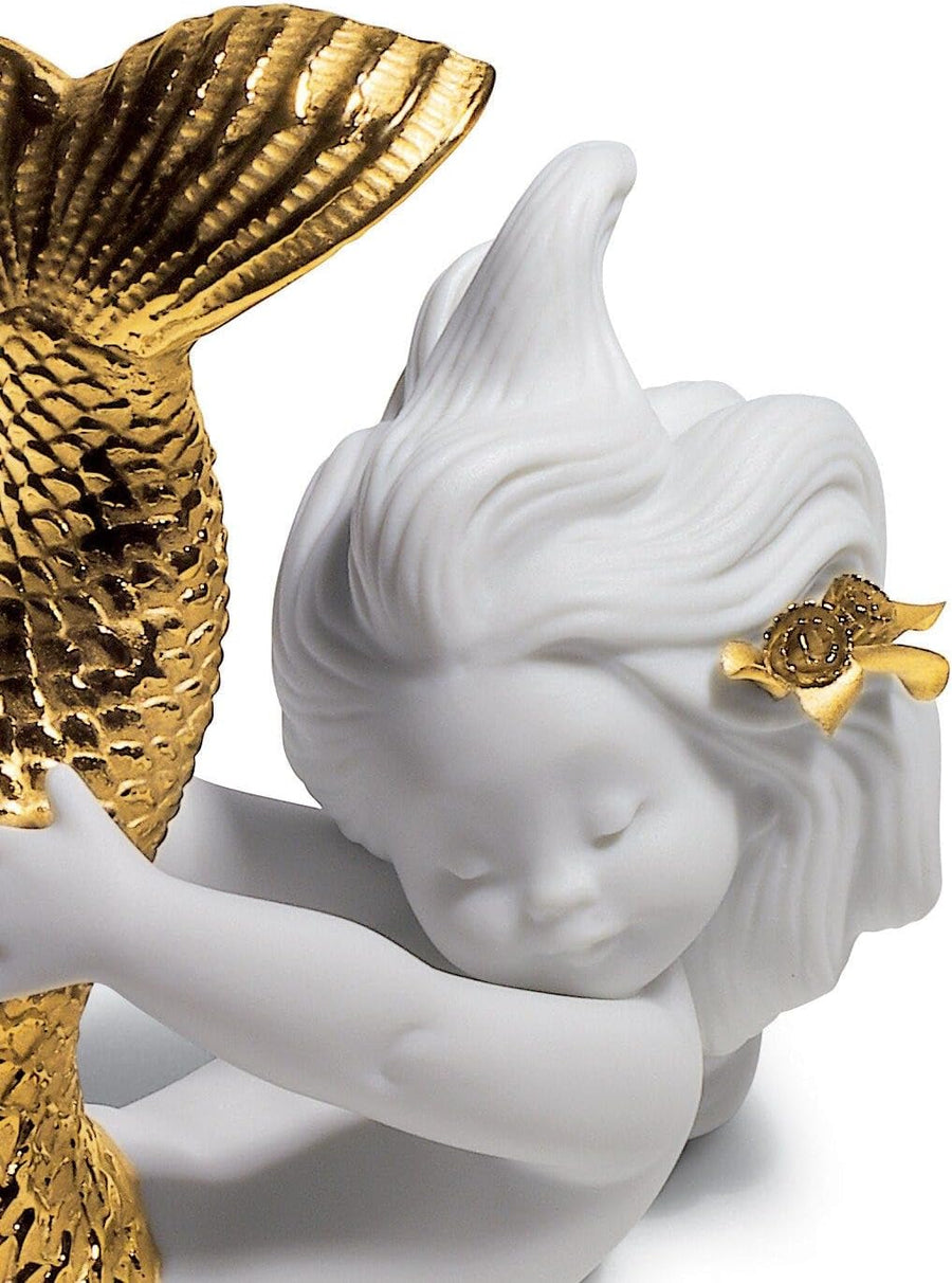 LLADRÓ Meerjungfrau-Figur Erwachen Am Meer. Gold. Meerjungfrau. Porzellan.