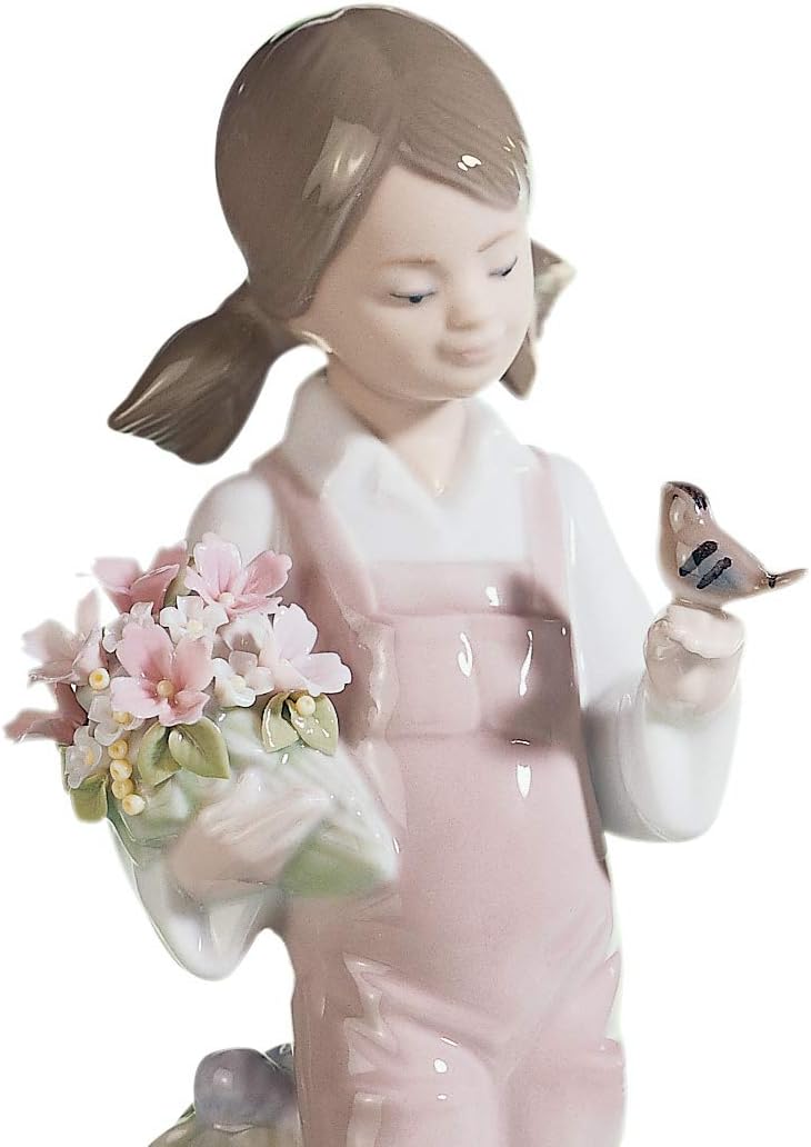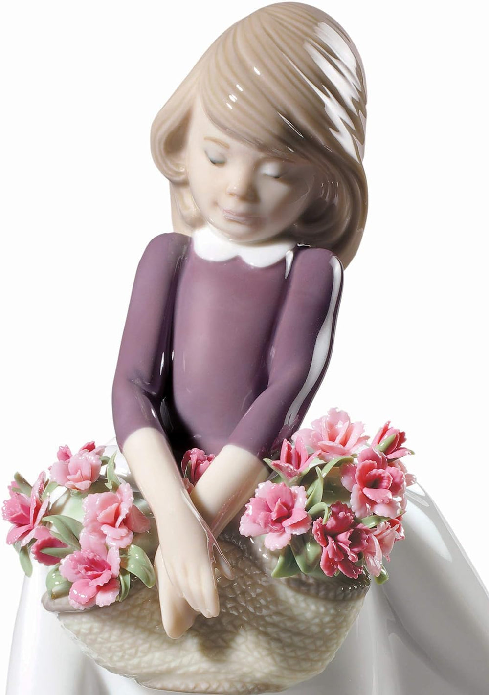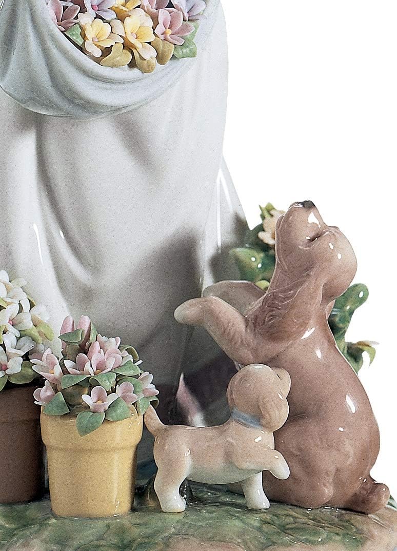 LLADRÓ Mädchen-Figur Zärtliches Spiel Im Garten. Mädchen Mit Blumen. Porzellan.