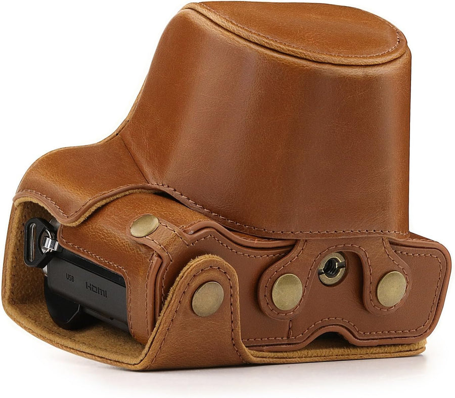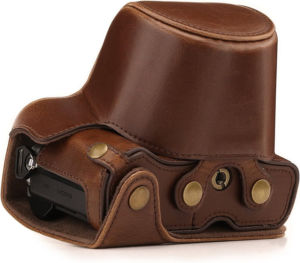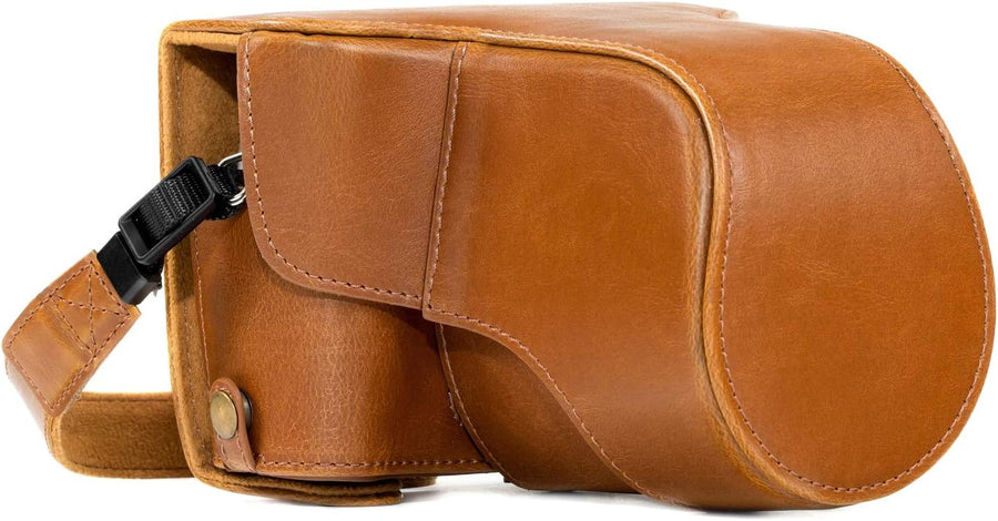 MegaGear MG560 Leder Kameratasche für Spiegelreflexkamera Sony Alpha A6000 mit 16-50mm Objektiv (Hel