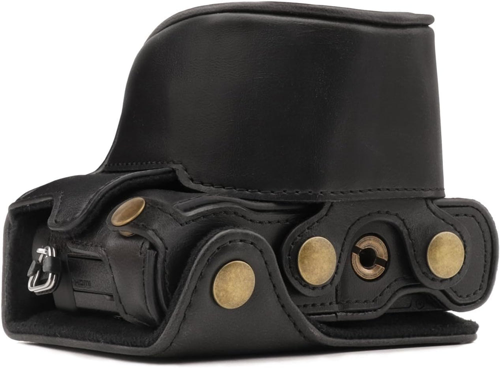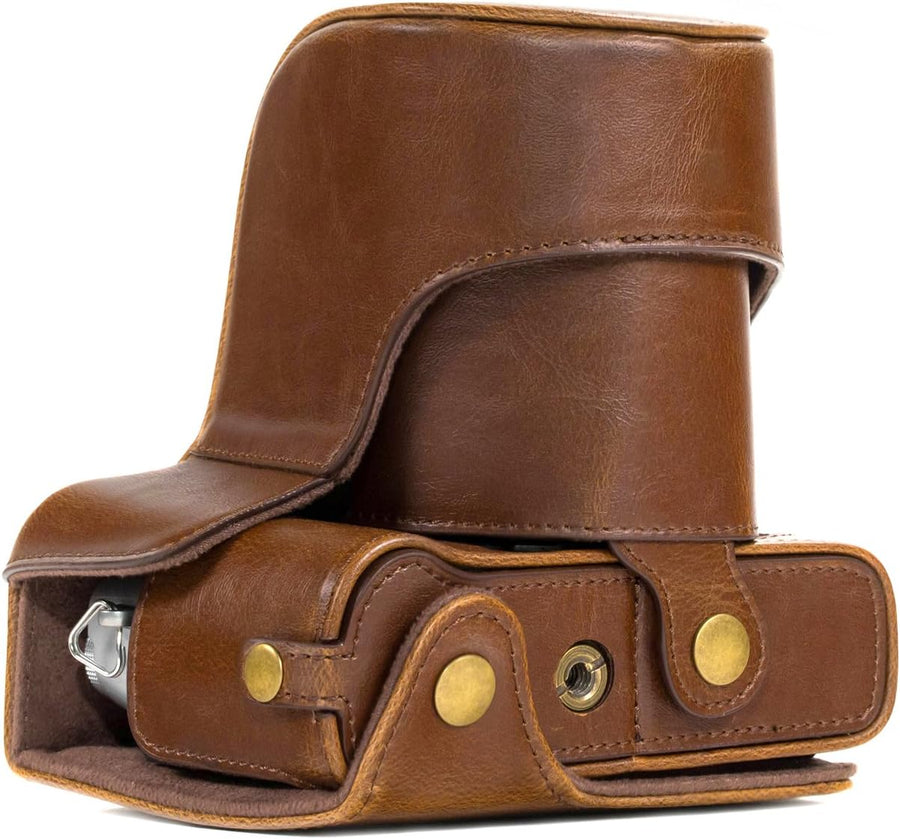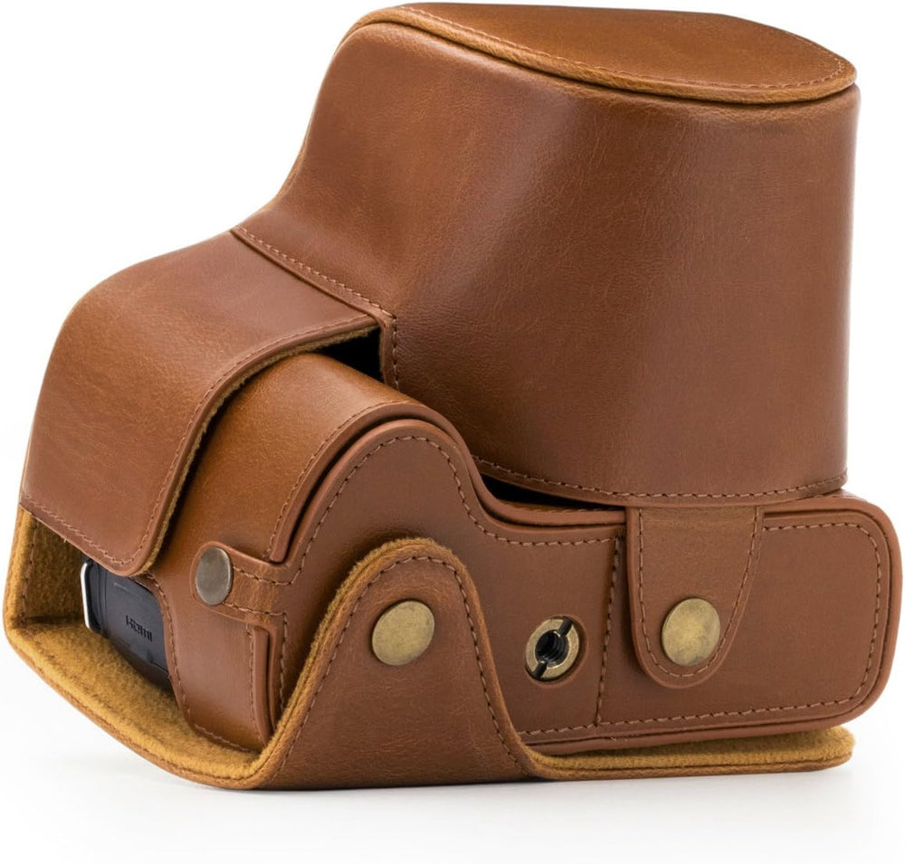 MegaGear MG892 Ever Ready Leder Kameratasche mit Trageriemen kompatibel mit Panasonic Lumix G80, G81