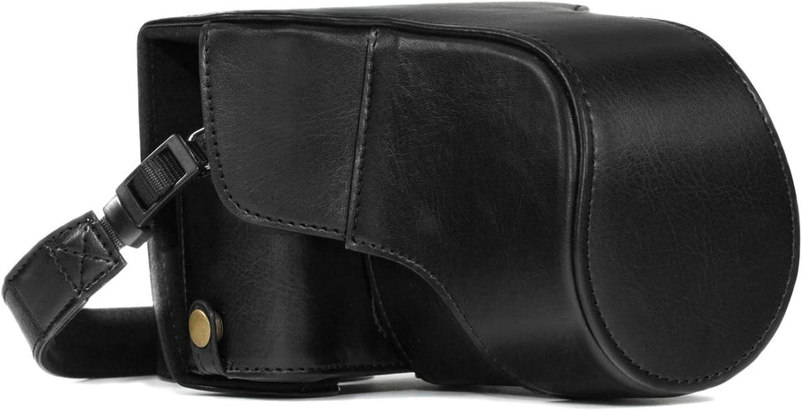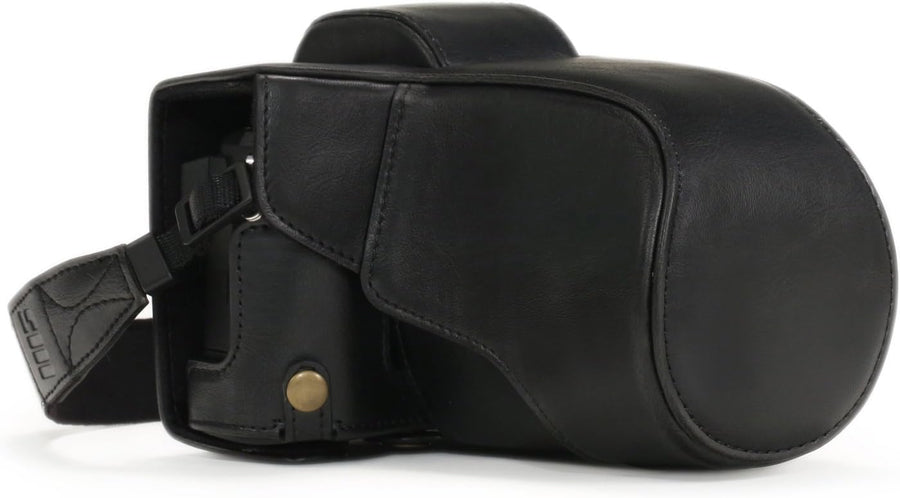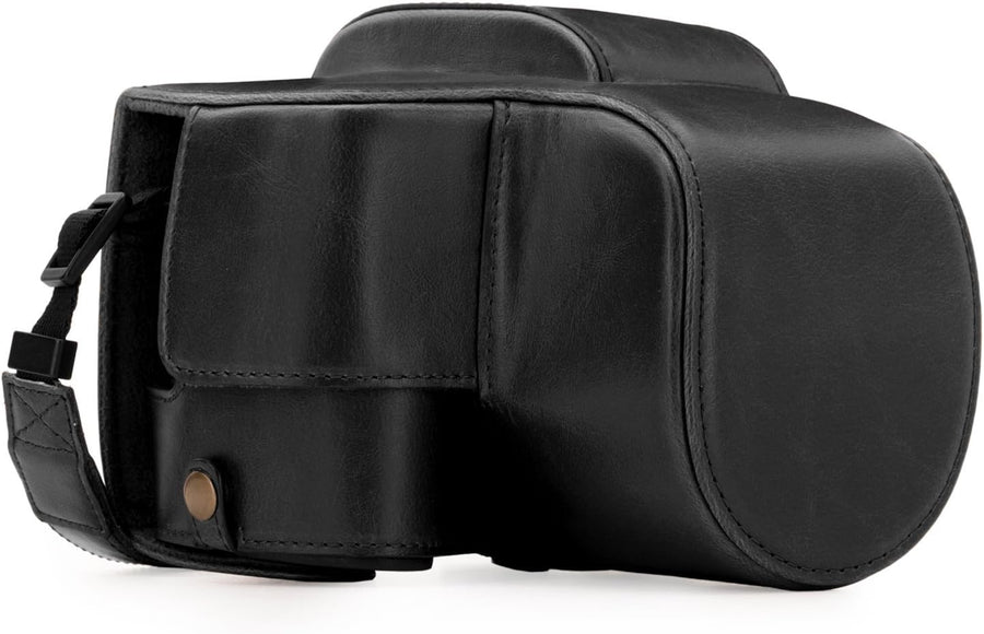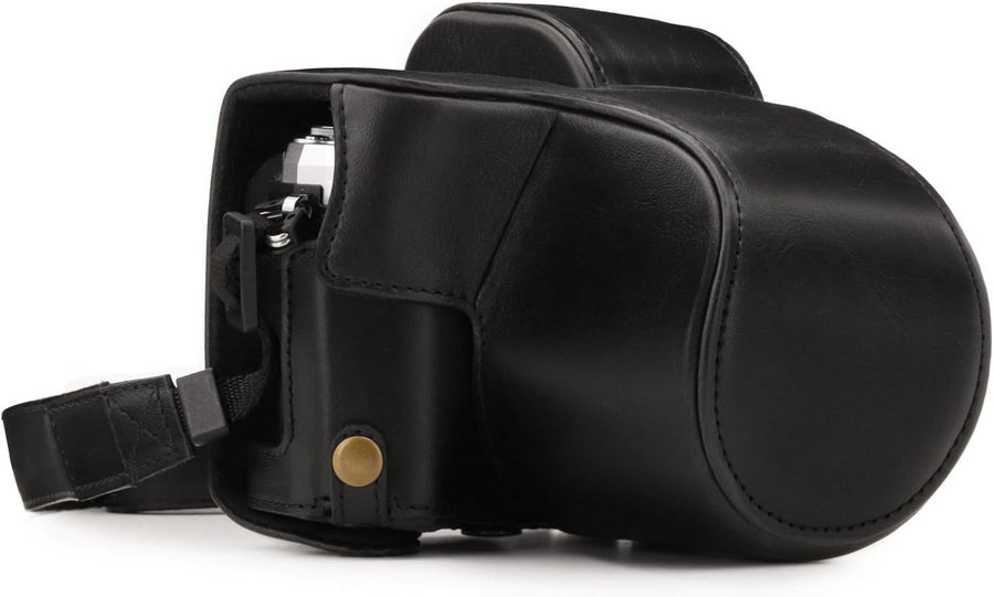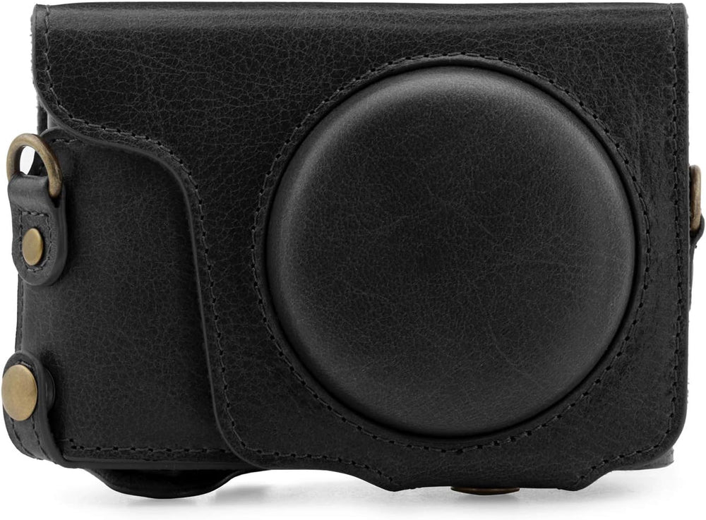 MegaGear Panasonic Lumix DC-TZ100, TZ200 Ever Ready Echtleder Kamera-Case mit Trageriemen - Schwarz,