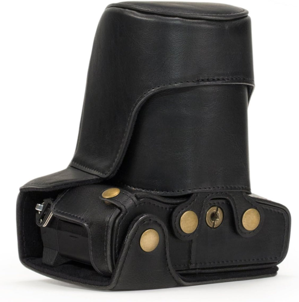 MegaGear MG599 Ever Ready Leder Kameratasche mit Trageriemen für Sony Cyber-Shot DSC-WX500 schwarz,