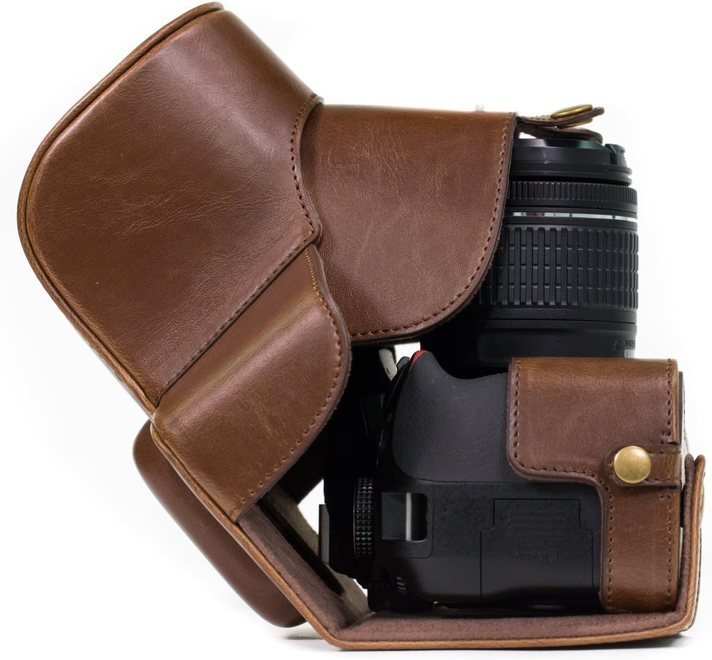 MegaGear Nikon D3400 Ever Ready Leder Kamera-Case mit Trageriemen und Batteriezugang Dunkelbraun MG8