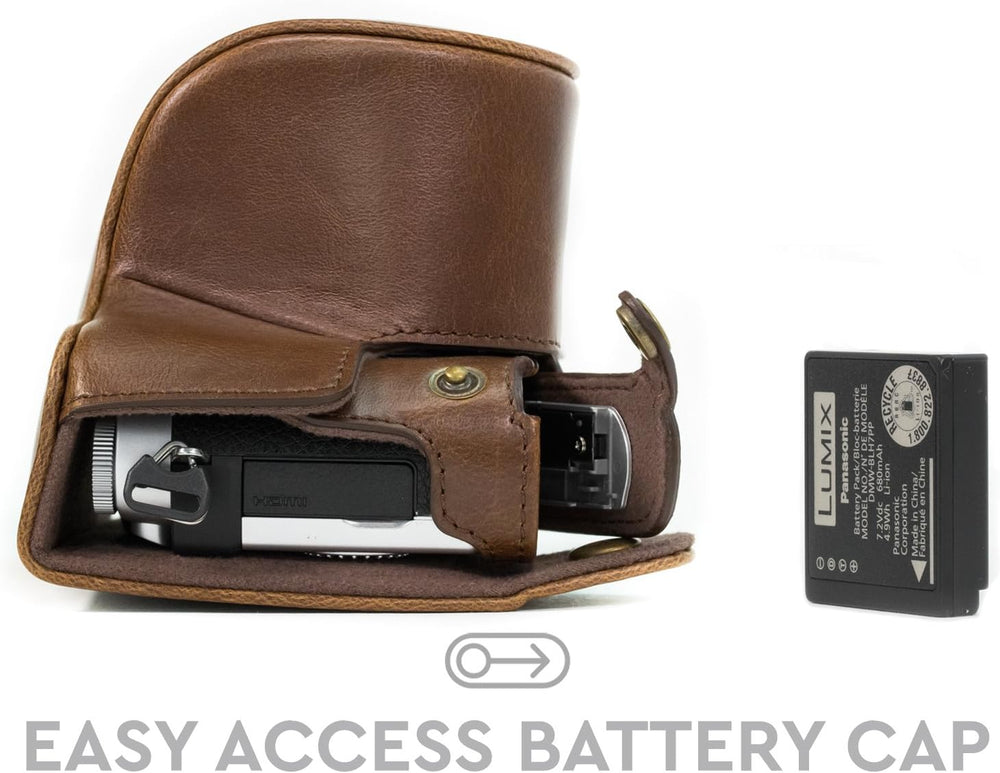 MegaGear Panasonic Lumix DC-FZ80, FZ82 Ever Ready Leder Kamera-Case mit Trageriemen und Batteriezuga
