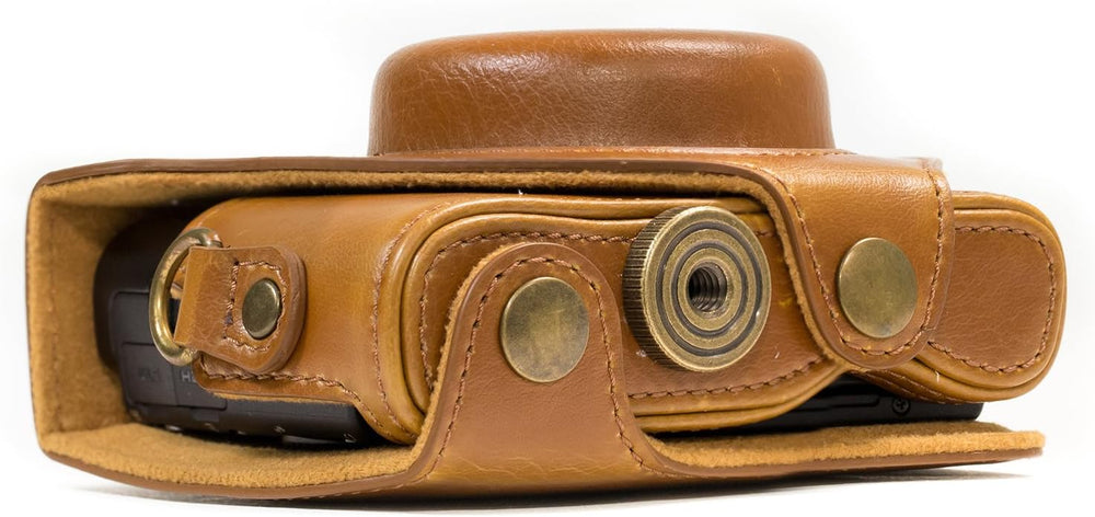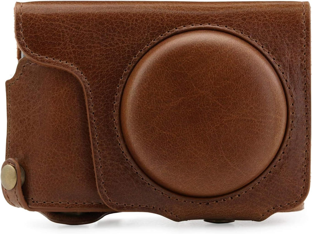 MegaGear Panasonic Lumix DC-TZ100, TZ200 Ever Ready Echtleder Kamera-Case mit Trageriemen - Braun MG