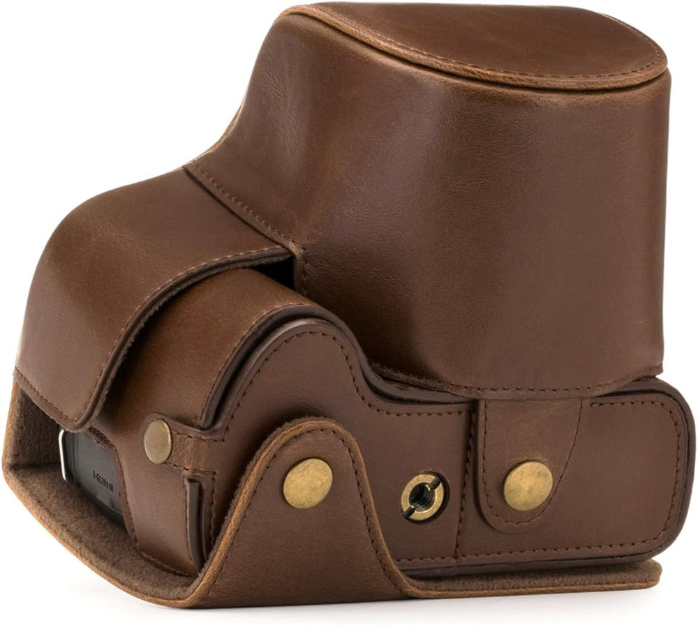 MegaGear Olympus OM-D E-M10 Mark III (14-42mm) Ever Ready Leder Kamera-Case mit Trageriemen und Batt