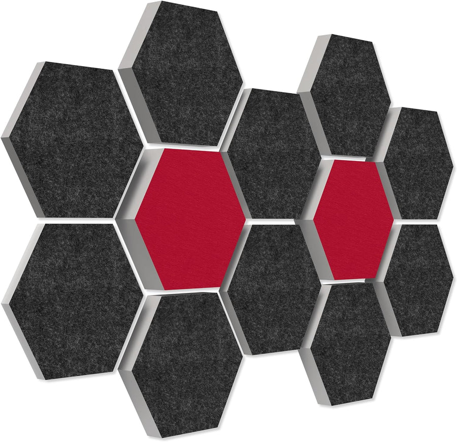 platino24 Schallabsorber Set Colore aus Basotect G+ mit Akustikfilz, 6 Absorberelemente Hexagon je Ø