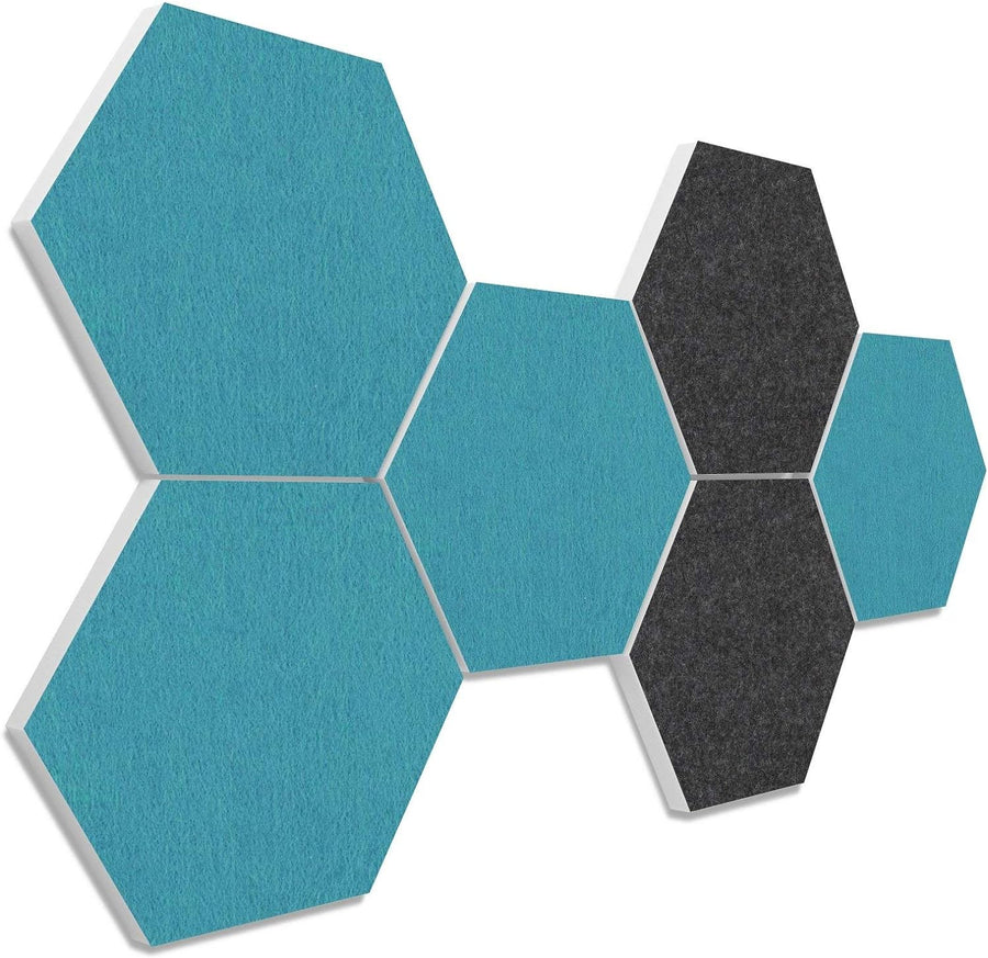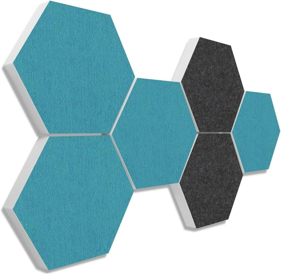 platino24 Set Schallabsorber Colore aus Basotect G+ mit Akustikfilz, 6 Waben je Ø30cm in Petrol + Na