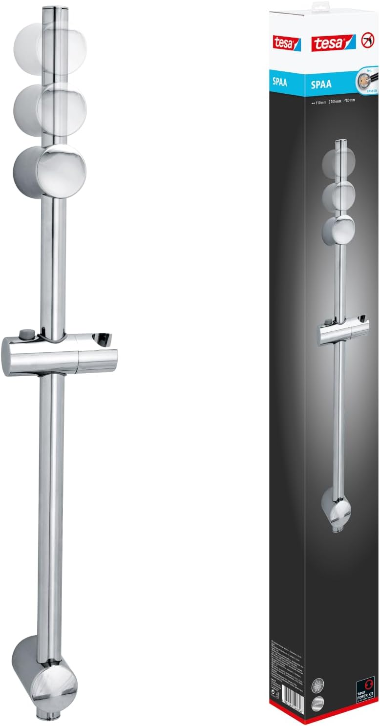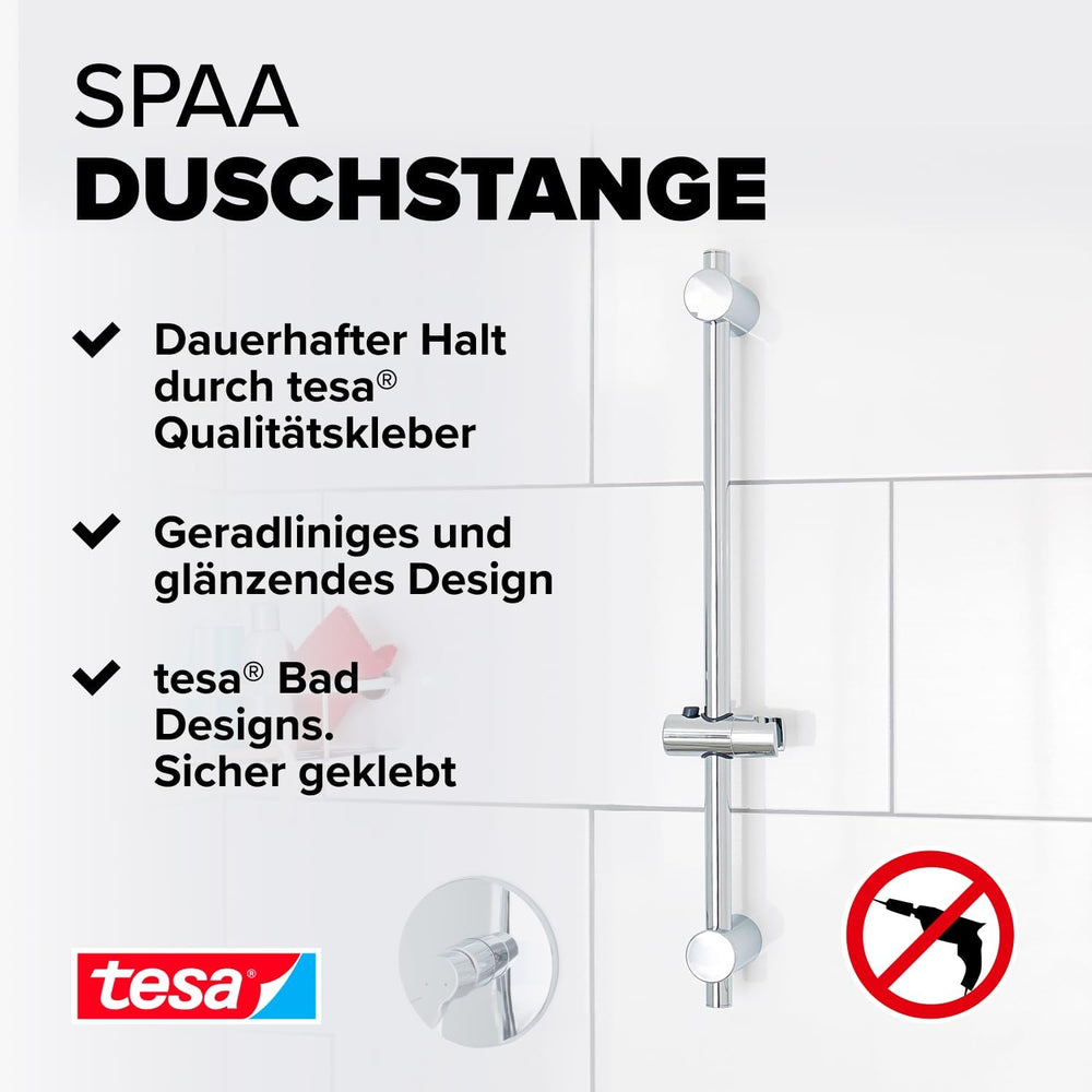 tesa SPAA Duschstange, verchromt, Duschkopfhalter höhenverstellbar, inkl. Klebelösung, Länge der Sta