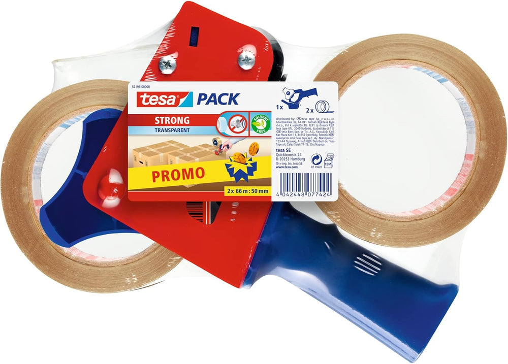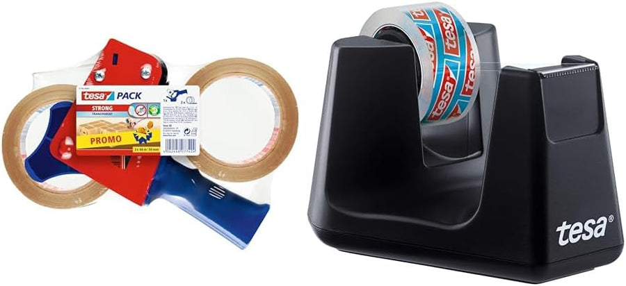 tesa Paketband-Abroller und tesapack Paketbänder im Set - Transparent - 66m x 50mm & Easy Cut SMART