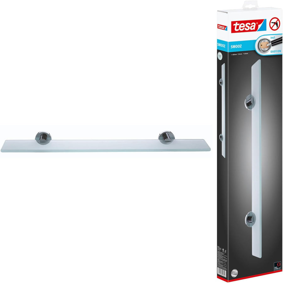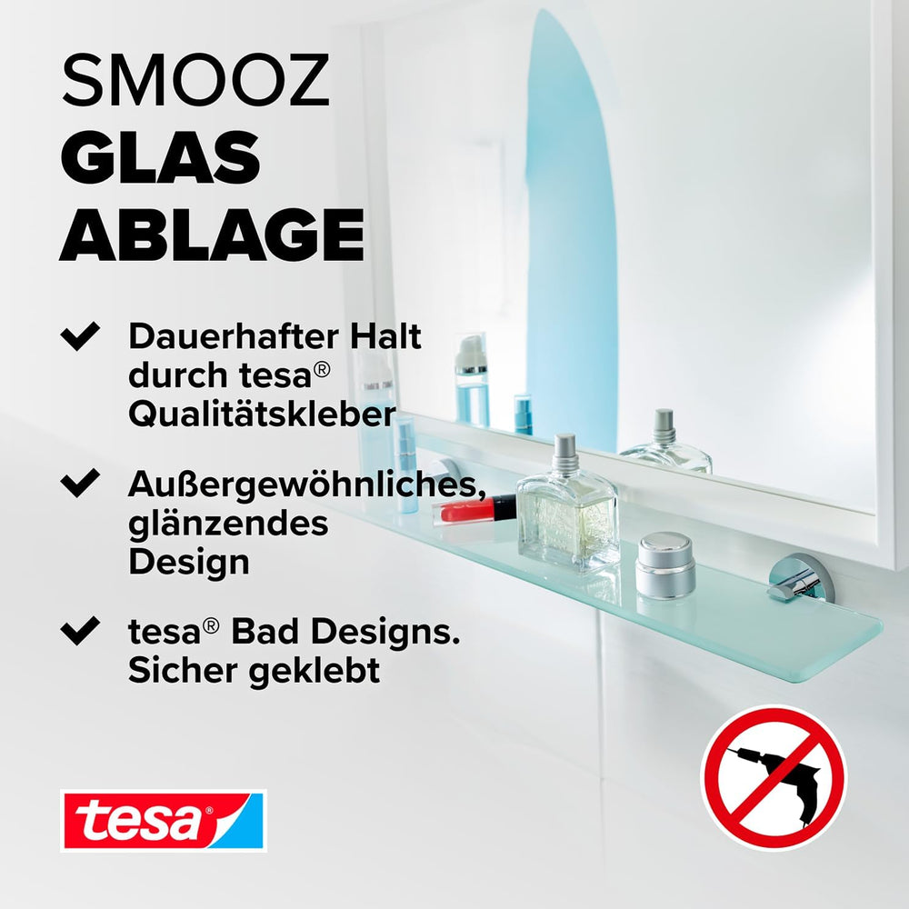 tesa SMOOZ Glasablage aus satiniertem Glas, verchromte Halterung - Badablage zur Wandbefestigung ohn