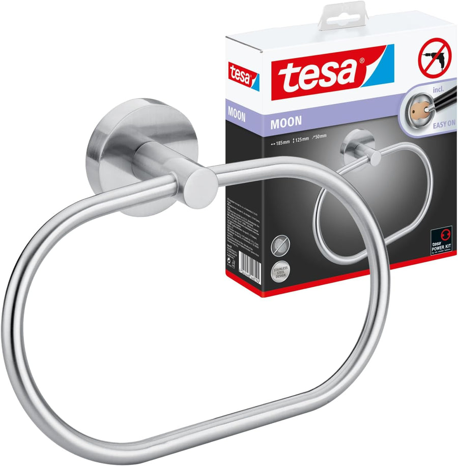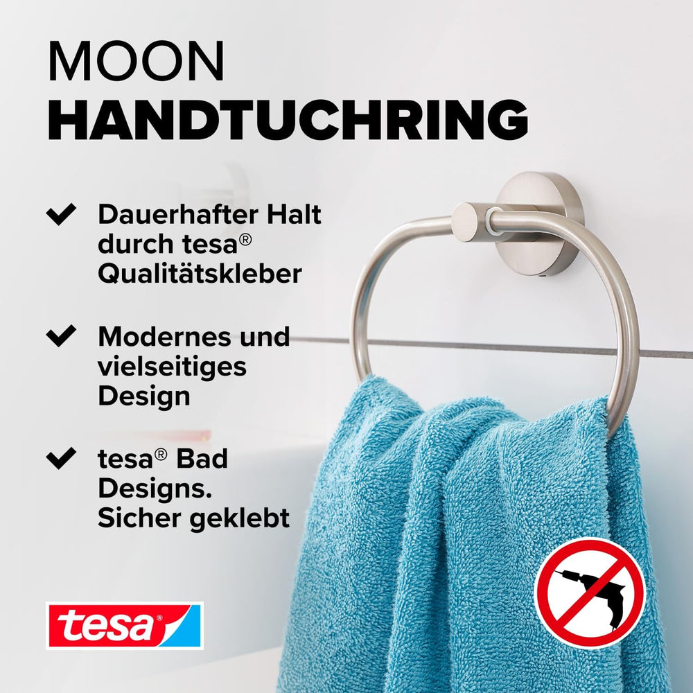 tesa Moon Handtuchring, verchromt - Handtuchhalter-Ring oval - zur Wandbefestigung ohne Bohren, inkl