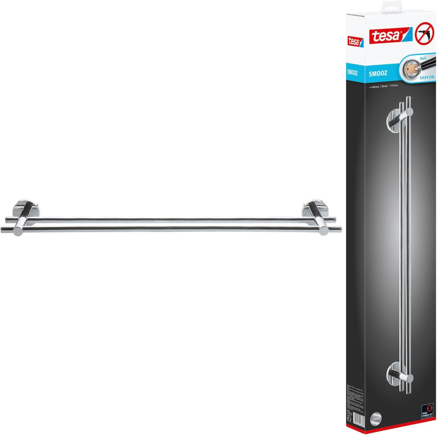 tesa SMOOZ Handtuchstange, verchromt - Badetuchhalter - zur Wandbefestigung ohne Bohren, inkl. Klebe