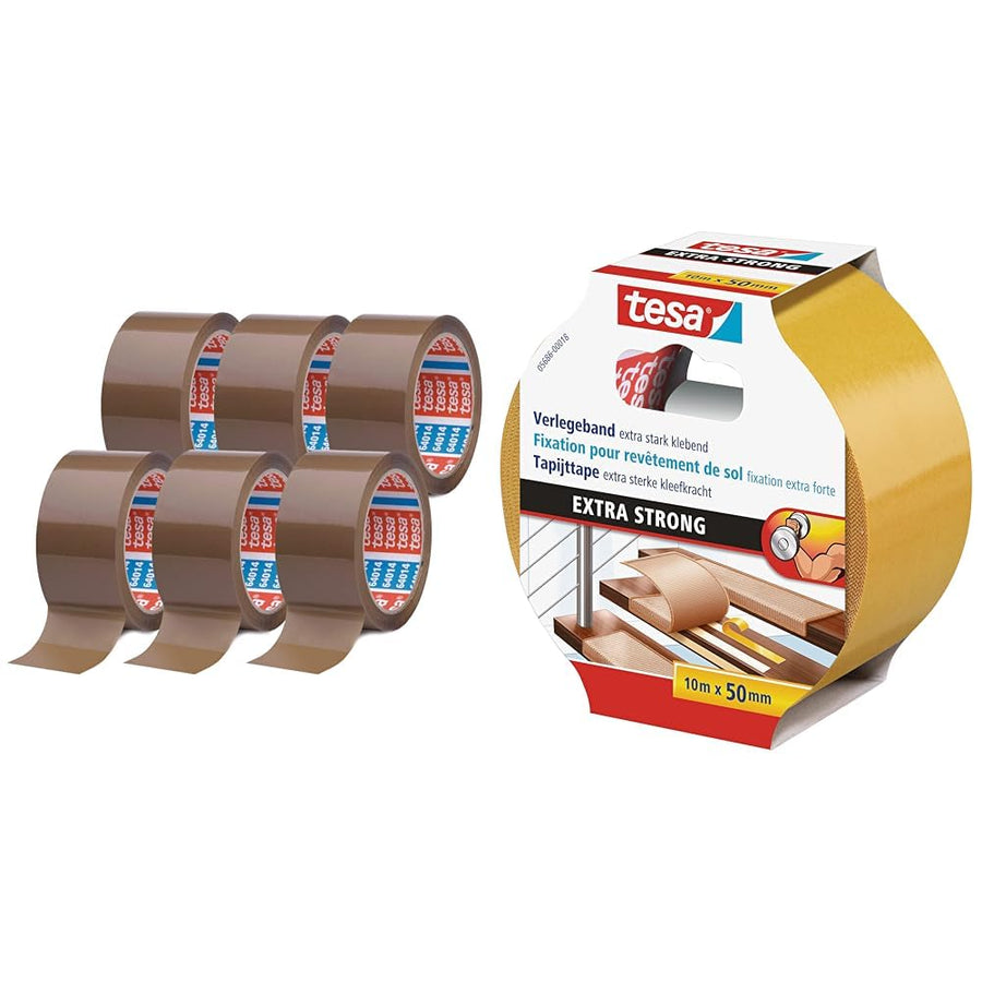 tesa pack 64014 im 6er Pack - Geräuscharmes Paketklebeband & Verlegeband extra stark klebend - Doppe